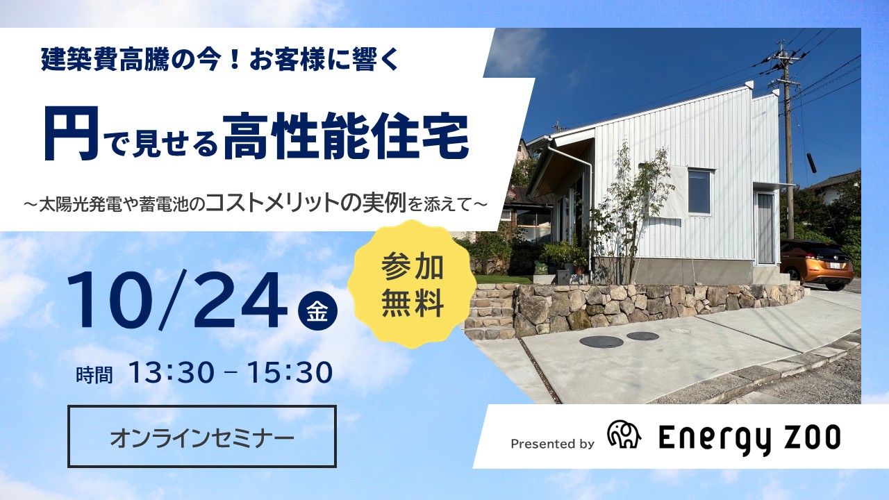 【10月24日(金)】実例あり!『建築費高騰の今!お客様に響く“円で見せる高性能住宅”』…